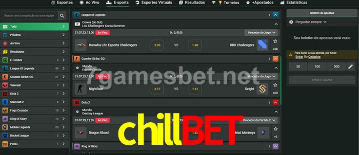 O chillbet oferece uma grande seleção de opções de apostas em e-sports com probabilidades competitivas